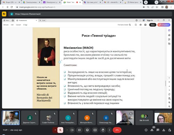«Темну тріаду» обговорювали зі студентами спеціальностей Професійна освіта (Цифрові технології) та Середня освіта (Математика)