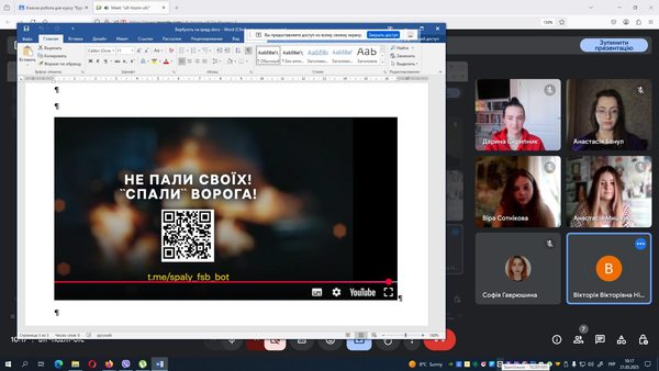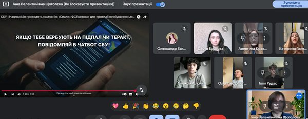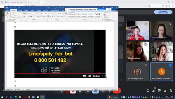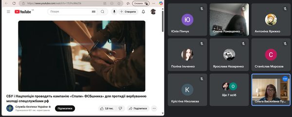Протягом 18-21 березня 2025 року викладачі факультету математики природничих наук та технологій провели заходи, на яких переглянули та обговорили зі студентами ролик про кампанію СБУ та Нацполіції «Спали ФСБшника» для протидії вербуванню молоді України спецслужбами рф.