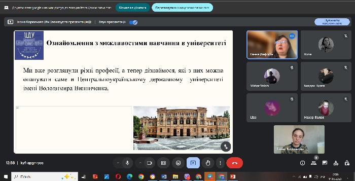 Студентка 4 курсу, групи ПН21Б, спеціальності Середня освіта (Природничі науки) Ілона Корольова розповіла учням як треба обирати професію, на що треба звернути увагу, що врахувати та що передбачити. Ознайомила учнів з перспективами навчання у фаховому коледжі «Альма Матер +» та ЦДУ ім. В.Винниченка. На заході була присутня доктор історичних наук, професор, професор кафедри природничих наук і методик їхнього навчання Дефорж Ганна Володимирівна, яка зупинилась на особливостях навчання за освітніми програмами Середня освіта (Природничі науки) та Середня освіта (Біологія та здоров’я людини, Хімія). Учні радо сприйняли цей захід та задавали багато питань стосовно навчання. Сподіваємося побачити деяких з них у наших закладах фахової передвищої та вищої освіти. До зустрічі!