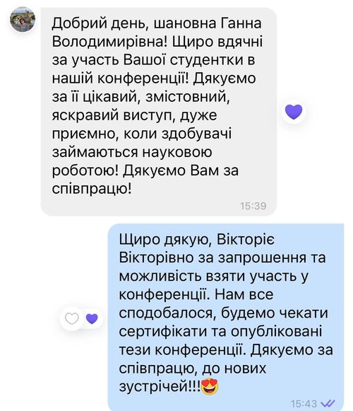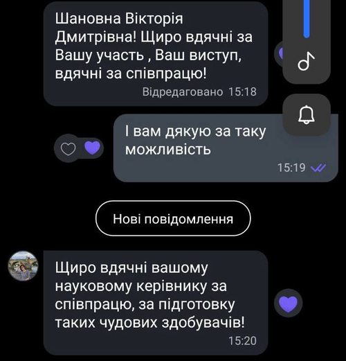Щиро дякуємо організаторам та модераторам конференції за запрошення та проведення конференції, за можливість виступати студентам разом з видатними науковцями України. Приємно вразило відповідальне, уважне та шанобливе ставлення до кожного учасника конференції, цілодобовий супровід до, під час та після конференції секретаря конференції Федорчук Вікторії Вікторівни. Дякуємо за співпрацю та до нових зустрічей!