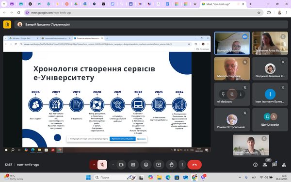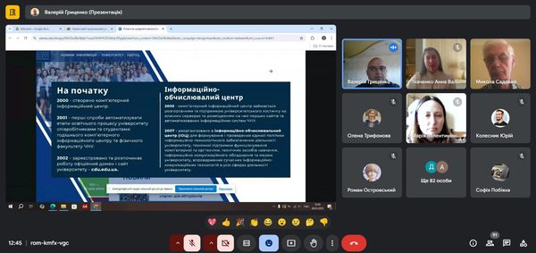 Валерій Григорович детально пояснив теоретичні основи проєкту, описав структуру АСУ університету, звернув увагу на особливості програм структурних підрозділів закладу освіти.