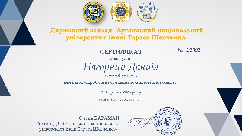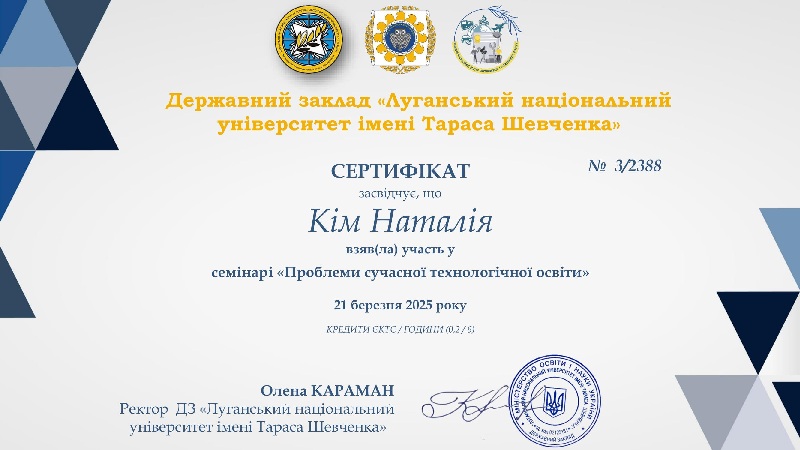 21 березня 2025 року на базі Державного закладу «Луганський національний університет імені Тараса Шевченка» (м. Лубни) відбувся семінар «Проблеми сучасної технологічної освіти», що пройшов у форматі онлайн відеозустрічі.