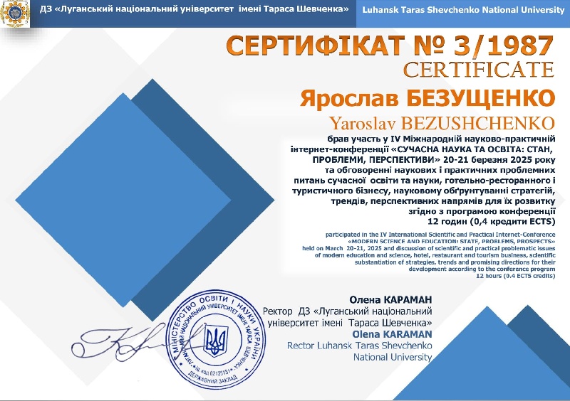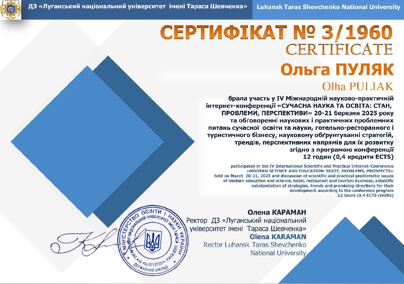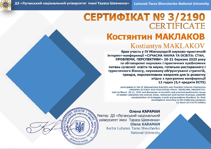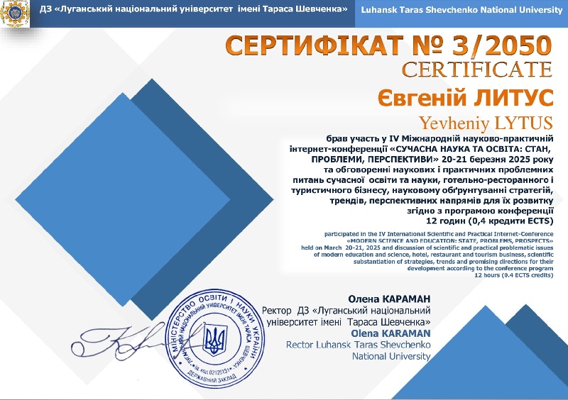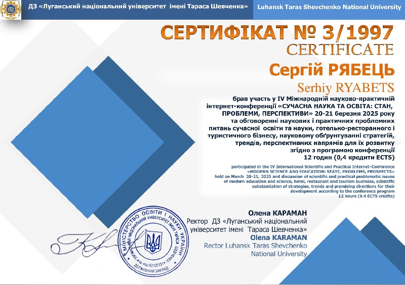 20–21 березня 2025 року відбулася IV Міжнародна науково-практична інтернет-конференція «Сучасна наука та освіта: стан, проблеми, перспективи». Конференція зібрала представників провідних українських та закордонних закладів освіти, зокрема Швейцарії, Італії, Іспанії, Мексики, Польщі та інших. Захід проходив у дистанційному форматі на базі кафедри професійної освіти, ресторанного і туристичного бізнесу Державного закладу «Луганський національний університет імені Тараса Шевченка» (м. Полтава). Кафедра інформатики, програмування, штучного інтелекту та технологічної освіти (секція технологічної та професійної освіти) Центральноукраїнського державного університету імені Володимира Винниченка є співорганізаторами заходу.