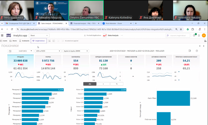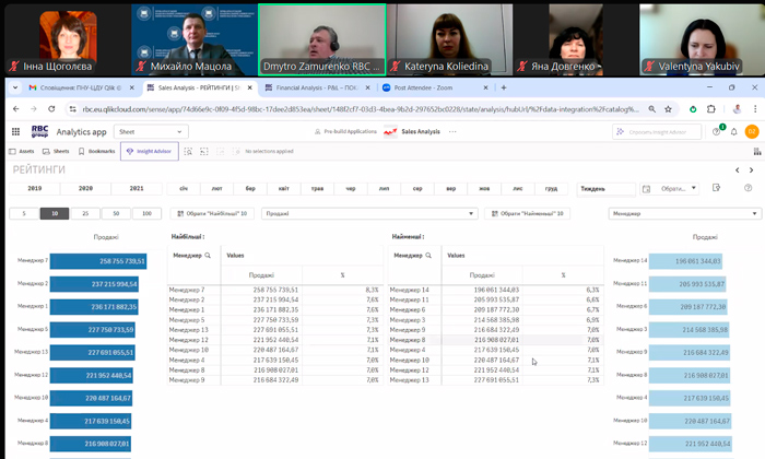 Під час дискусії особливу увагу було приділено використанню аналітичної платформи Qlik Sense як інструменту для підготовки студентів до роботи у сфері бізнесу, економіки та менеджменту. Представники RBS Group поділилися досвідом інтеграції цієї технології у бізнес-процеси та обговорили можливості її застосування в освітньому середовищі.