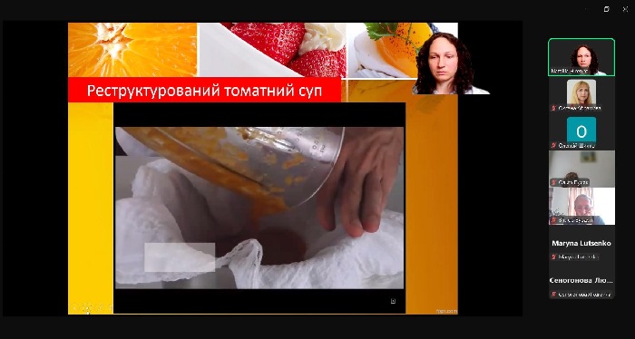У ході лекції Наталія Ігорівна розповіла про основи молекулярної гастрономії, сучасні технології приготування страв із використанням фізико-хімічних процесів, а також про новітні тенденції у сфері кулінарних інновацій. Окрему увагу було приділено методам гелеутворення, піноутворення, дегідратації та використанню рідкого азоту для створення унікальних текстур і смакових комбінацій тощо.