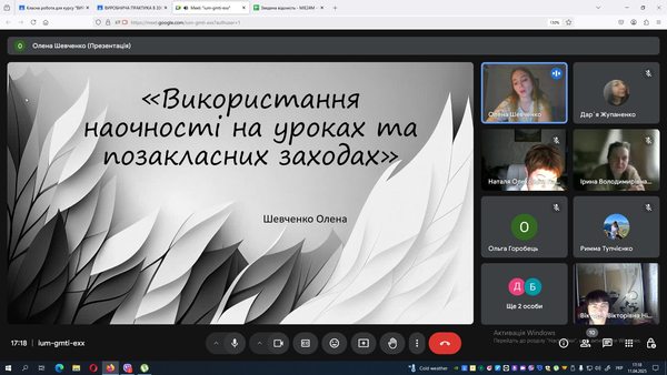 Шевченко Олена охарактеризувала особливості використання різних видів наочності на уроках та позакласних заходах для старшокласників закладів загальної середньої освіти.