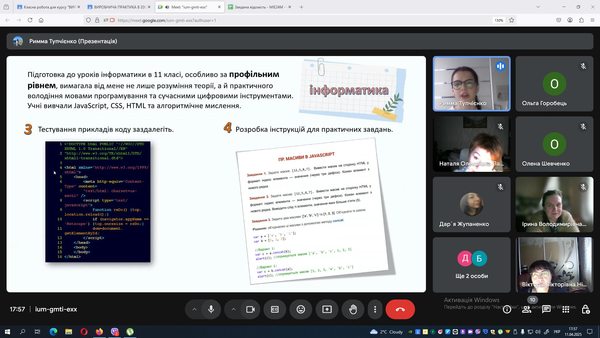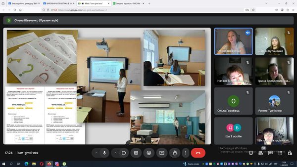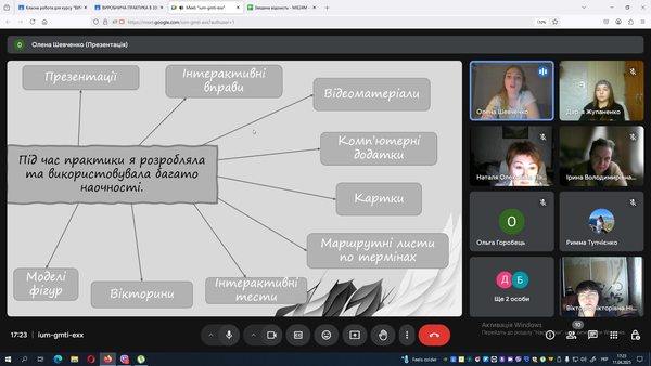 Далі практиканти поділилися враженнями, своїми здобутками під час практики, представили доповіді на обговорення присутніх методистів та одногрупників.