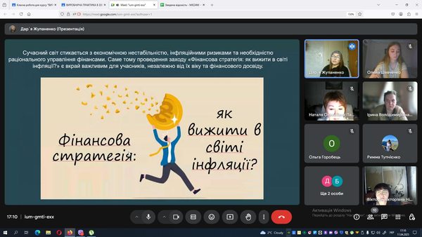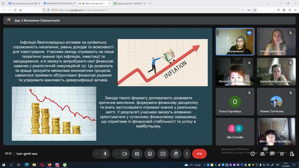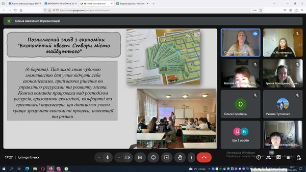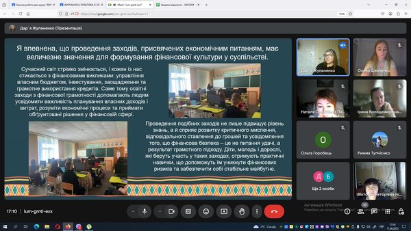 Першою свою доповідь представила Жупаненко Дар’я, розповіла про важливість проведення позакласних заходів на економічну проблематику для учнів закладів загальної середньої освіти.