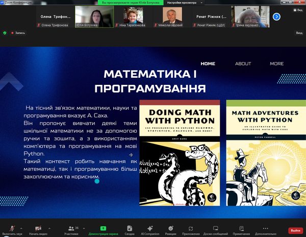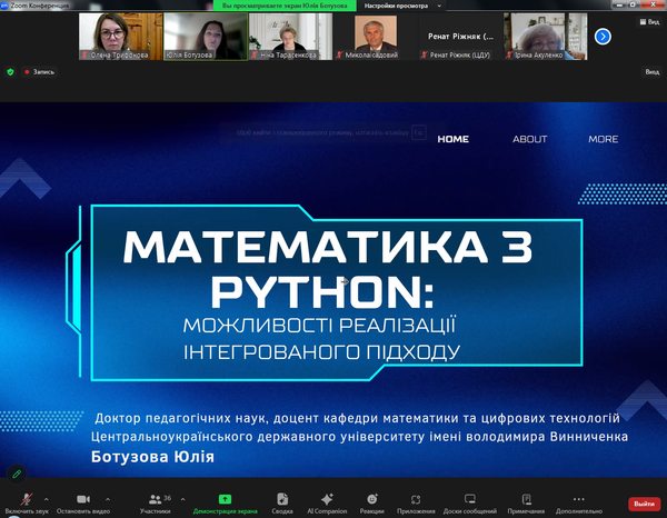 - д.пед.н., доцент Ботузова Ю.В. – «Математика з Python: можливості реалізації інтегрованого підходу».