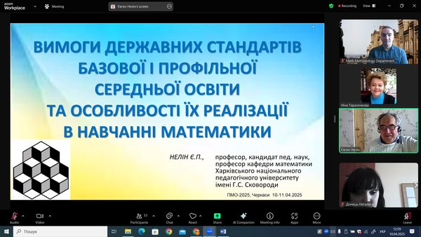 - к.пед.н., професор Нелін Є.П. – «Вимоги державних стандартів базової і профільної середньої освіти та особливості їх реалізації в навчанні математики»;