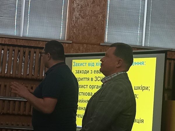 Також, представник ДСНС ознайомив з небезпеками ураження людей та провів навчання з присутніми з методів убезпечення та профілактики від небезпек радіаційного та хімічного зараженням.