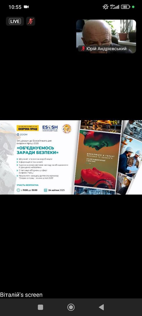 В рамках вивчення дисципліни «Безпека життєдіяльності та охорона праці в галузі», студенти групи УМКА24Б та доцентка кафедри інформатики, програмування, ШІ та технологічної освіти Ольга Пуляк взяли участь в бліцфорумі «Об’єднуємось заради безпеки» з нагоди Всесвітнього дня охорони праці, який відбувся 24 квітня 2025 року в онлайн-форматі. Захід об’єднав представників профспілок, роботодавців, експертів з охорони праці та громадських організацій для обговорення актуальних питань безпеки на робочих місцях.