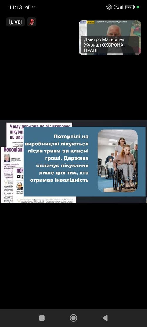 Попри нову для студентів–філологів тематику, учасники активно включилися в обговорення. Найбільший інтерес викликали питання психосоціальної підтримки працівників, цифровізації у сфері охорони праці та відсутності відкритих даних про профзахворювання. Одним із найцікавіших результатів опитування учасників Бліцфоруму, в якому взяли участь і наші студенти, стало питання про те, хто має найбільший вплив на підвищення рівня охорони праці в Україні. Виявилося, що найбільший внесок роблять роботодавці (46%), а також держава, громадські організації, працівники, профспілки та медіа
