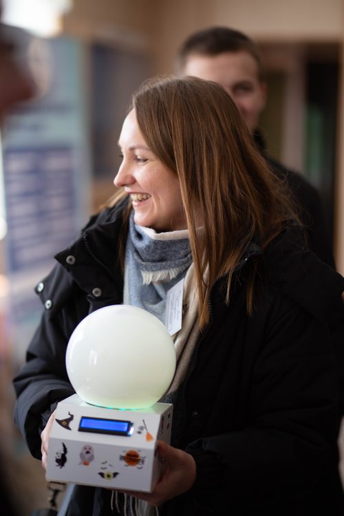 Цікавим і надихаючим стало знайомство абітурієнтів із локацією, яка презентувала спеціальність А5 «Професійна освіта (Цифрові технології)». Сучасний світ цифрових рішень, роботизованих систем і смарттехнологій захопив увагу учнів, продемонструвавши їм широкі можливості реалізації у високотехнологічному майбутньому. Учасники заходу мали нагоду зануритися у світ цифрових інновацій: студенти освітньої програми Професійна освіта (Цифрові технології) разом із викладачами представили власні розробки, влаштували видовищні бої роботів і навіть запропонували нетрадиційне «ворожіння» на кулі бажань, що передбачало креативне бачення цифрової кар’єри.