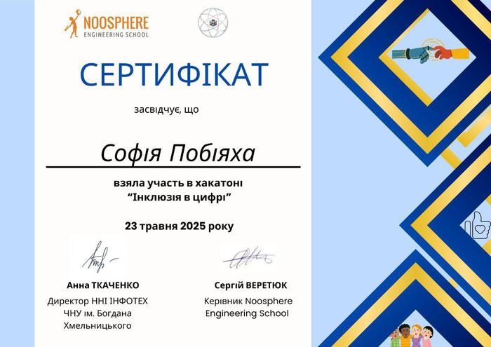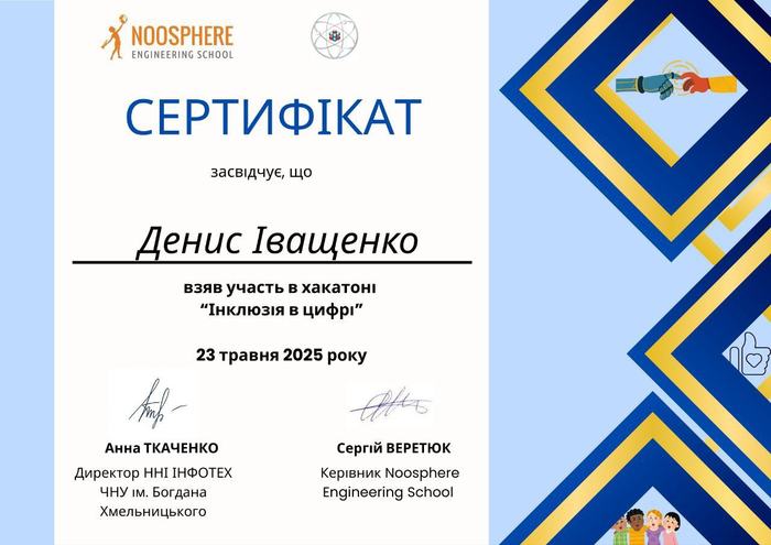 23 травня 2025 року відбувся хакатон «Included Hackathon / Інклюзія в цифрі», який об’єднав молодь навколо важливої теми інклюзивної освіти в умовах цифровізації.