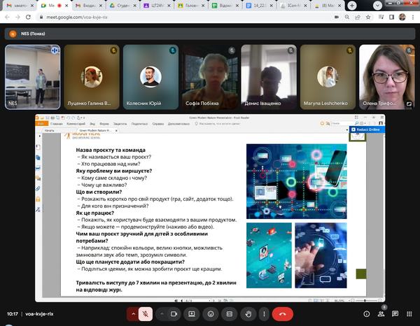 Серед учасників, які продемонстрували свої ідеї та технічні рішення, були студенти освітньо-професійної програми «Професійна освіта (Цифрові технології)» Центральноукраїнського державного університету імені Володимира Винниченка, група ЦТ23Б: Іващенко Денис, Колесник Юрій та Побіяха Софія. Їхні напрацювання вирізнялися креативністю та глибоким розумінням проблем інклюзії в цифровому освітньому середовищі.