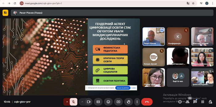 На пленарному засіданні виступили професори Микола Ілліч Садовий та Олена Михайлівна Трифонова з доповіддю «Формування предметних компетентностей в суб'єктів навчання засобами DIGITAL TWINS», професори Ренат Ярославович Ріжняк та Наталя Олексіївна Пасічник з доповіддю «Цифровізація різних ланок європейської освіти: контекст гендерного зближення».
