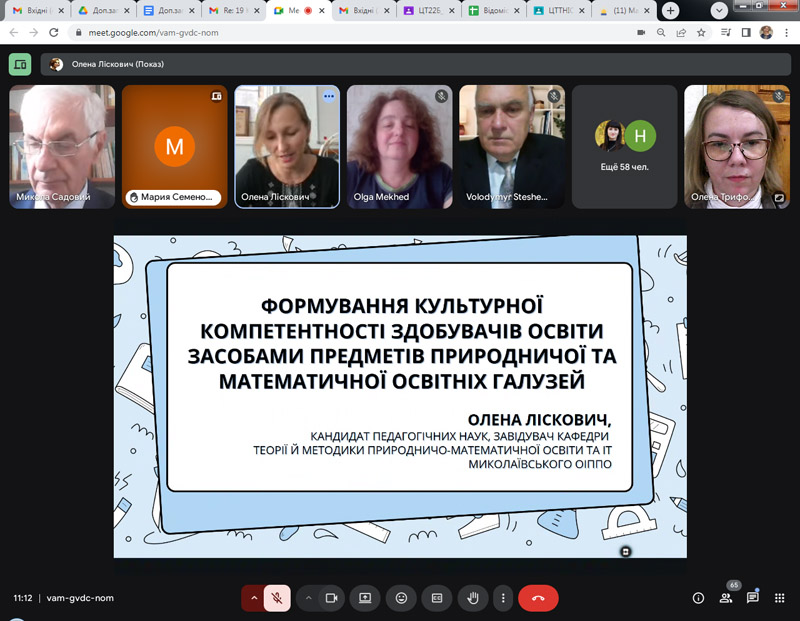 Олена Ліскович кандидат педагогічних наук, доцент, завідувач кафедри теорії й методики природничо-математичної освіти та інформаційних технологій Миколаївського обласного інституту післядипломної педагогічної освіти; Анна Ткаченко кандидат педагогічних наук, доцент, директор навчально-наукового інституту інформаційних та освітніх технологій, Людмила Кулик кандидат педагогічних наук, доцент, Тетяна Романенко доктор педагогічних наук, професор Черкаського національного університету ім. Б. Хмельницького розглянули проблеми формування культурної компетентності здобувачів освіти засобами предметів природничої та математичної освітніх галузей, проєктну технологію навчання, як засіб розвитку методичної компетентності фахівців.