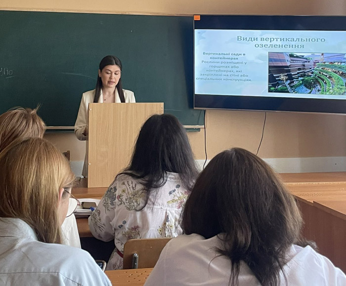 Головйова Катерина представила курсову роботу на тему «Вертикальне озеленення закритих приміщень», де не тільки дослідила екологічні та естетичні аспекти теми, а й підготувала авторський стенд з вертикальним озелененням, який тепер прикрашає приміщення лабораторії ботаніки.