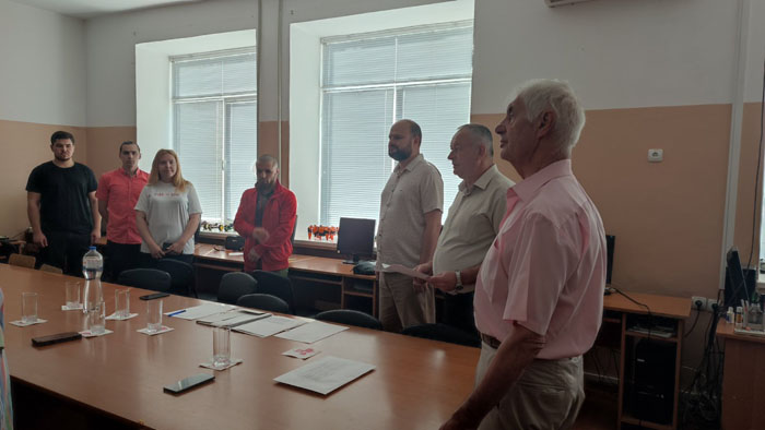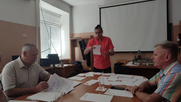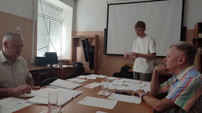 Теоретичну частину іспиту приймала комісія в складі: голова комісії – доктор педагогічних наук, професор Садовий М.І., екзаменатори: доктор педагогічних наук, професор Трифонова О.М., старший викладач, кандидат педагогічних наук Соменко Д.В., кандидат педагогічних наук, доцент Шлянчак С.О., також на екзамені був присутній стейкхолдер, в.о. директора Кропивницького вищого професійного училища (ВПУ №9) Рацул О.Б.