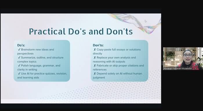 • Хурайра Фаатіма Музамміл (ОАЕ), представниця студентської робочої групи IDoA, презентувала власний ресурс для інформування однолітків про принципи академічної доброчесності.