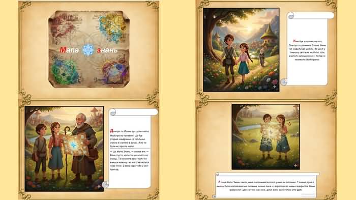 Окрім розробки вебплатформи, наші студенти також створили та візуалізували сюжетну історію, яка описує процес навчання у такому майбутньому світі. У ній викладачі були всюди, а знання поширювалися природно – через спілкування, співпрацю та взаємну допомогу. Люди ділилися досвідом один з одним, а діти об’єднувалися у навчальні групи, щоб разом пізнавати нове. Якщо ж їм вдавалося зустріти мудрого наставника, вони могли опанувати одразу кілька навичок та сфер знань. Ця ідея, натхненна образом духовного вчителя у буддизмі, підкреслює важливість не лише індивідуального навчання, а й глибокої взаємодії між поколіннями та колективного пошуку знань.