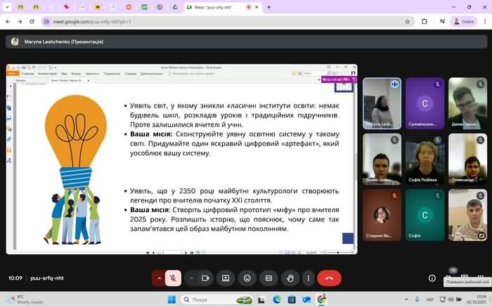 На початку заходу учасникам запропонували дві проблеми для розв’язання. Студенти обрали завдання, яке вимагало уявити світ без традиційних освітніх інституцій: без шкільних будівель, розкладів уроків чи звичних підручників. У цьому середовищі залишилися лише вчителі та учні, а отже потрібно було знайти нові підходи до навчання. Тож скориставшись відведенним на це часом, наші студенти створили проект.