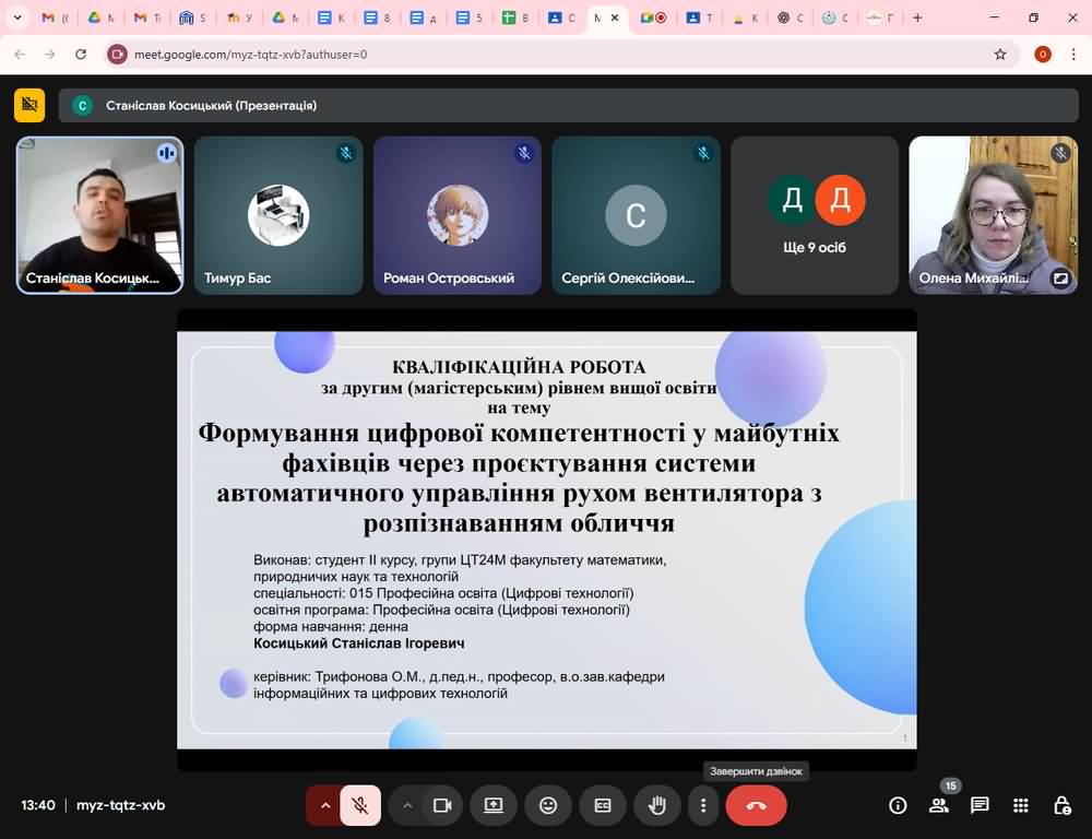 У листопаді 2025 року на кафедрі інформаційних та цифрових технологій відбувся передзахист магістерських робіт здобувачів другого (магістерського) рівня вищої освіти за освітньо-професійною програмою «Професійна освіта (Цифрові технології)».