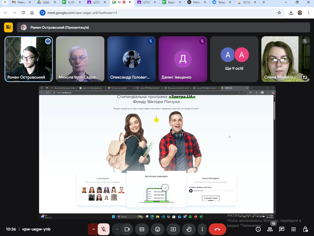 09 травня 2025 року студент групи ЦТ24М Островський Роман провів лекцію для здобувачів освіти першого (бакалаврського) рівня вищої освіти спеціальностей Професійна освіта (Цифрові технології), Статистика, Середня освіта (Математика), присвячену стипендіальній програмі «Завтра.UA», яку реалізує Фонд Віктора Пінчука.