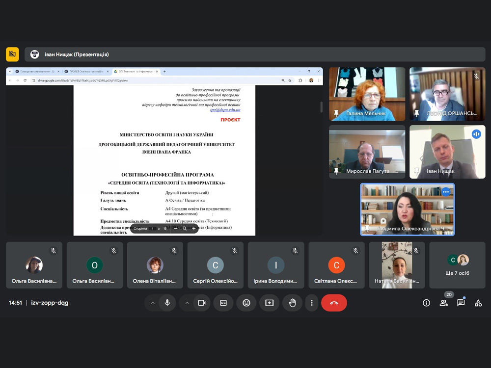6 березня 2025 року відбулася важлива перехресна зустріч в онлайн режимі, на якій стейкхолдери і рецензенти з Центральноукраїнського державного університету імені Володимира Винниченка та Дрогобицького державного педагогічного університету імені Івана Франка спільно обговорили освітньо-професійні програми «Середня освіта (Технології)» першого (бакалаврського) та другого (магістерського) рівнів вищої освіти.