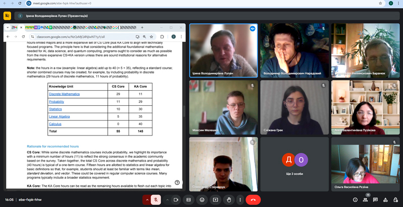У заході брали участь викладачі кафедри інформатики, програмування, ШІ та ТО: доцент Нарадовий В.В. (гарант ОПП «Комп’ютерні науки» для бакалаврів), доцент Пузікова А.В. (гарант ОПП 122 «Комп’ютерні науки» для магістрів), доцент Присяжнюк О.В. (гарант ОПП 126 «Інформаційні системи та технології. Штучний інтелект» для бакалаврів), доцент Рєзіна О.В. (гарант ОПП «Інформатика та Робототехніка» для бакалаврів), а також члени робочих груп – доцент Лупан І.В., доцент Шлянчак С.О., доцент Баранюк О.Ф. і всі бажаючі.