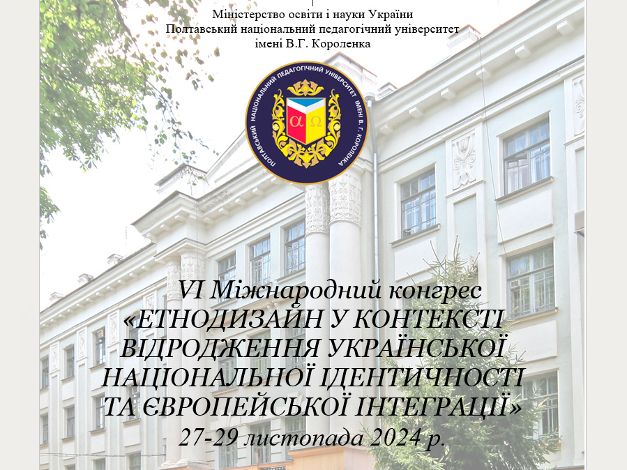 27 листопада розпочав роботу VІ Міжнародний конгрес «Етнодизайн у контексті відродження української національної ідентичності та європейської інтеграції» (27-29 листопада 2024 року, м.Полтава), співорганізатором якого став ЦДУ ім.В.Винниченка.