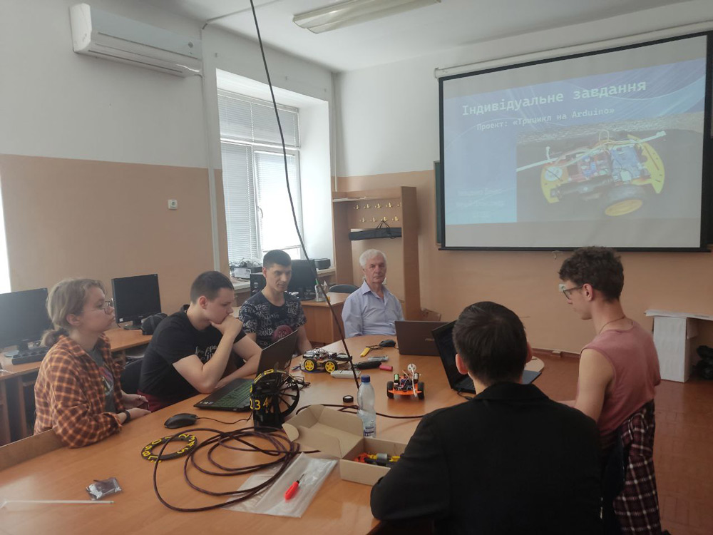 Під час вивчення курсу мехатроніки (викладач: д.пед.н., проф. М.І.Садовий) студенти спеціальності Професійна освіта (Цифрові технології), групи ЦТ23Б виконували індивідуальну роботу, де вони мали змогу використати отримані знання та свою творчість. Як результат виконання лабораторних робіт цього курсу, було виконано індивідуальне завдання, яке полягало у створенні діючих робототехнічних систем.