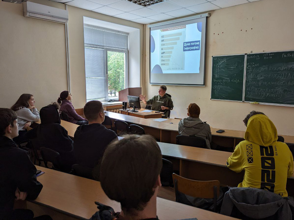 У студентів першого курсу груп СТ23Б та ІСТ23Б факультету математики, природничих наук та технологій Центральноукраїнського державного університету імені Володимира Винниченка 19 квітня 2024 р. відбулася подія, яка занурила їх у світ цифрової візуалізації інформації, зокрема, в сучасному медіапросторі.