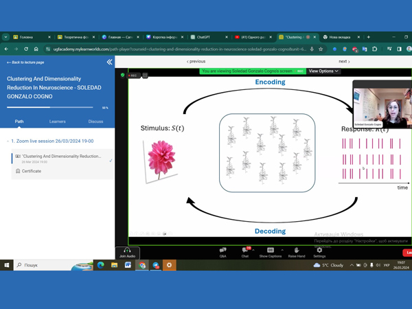 26 березня 2024 року відбулася відкрита лекція професорки Соледад Гонсало Коньо (Soledad Gonzalo Cogno) на тему «Кластеризація та зменшення розмірності в нейронауці». Професорка Соледад Гонсало Коньо відома дослідниця та керівниця групи в Інституті системної нейронауки Кавлі при Норвезькому науково-технічному університеті, докторка філософії з обчислювальної нейронауки.