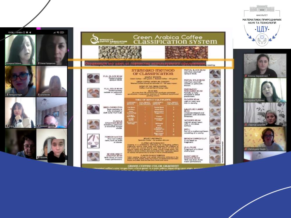23.11.2023 року здобувачі вищої освіти першого (бакалаврського) рівня спеціальності 014 Середня освіта (Природничі науки) в рамках онлайн лекторію прослухали лекцію кандидата технічних наук, доцента кафедри технології консервування Національного університету харчових технологій (м. Київ) Катерини Володимирівни Рубанки на тему: «Технологія виробництва кави натуральної».
