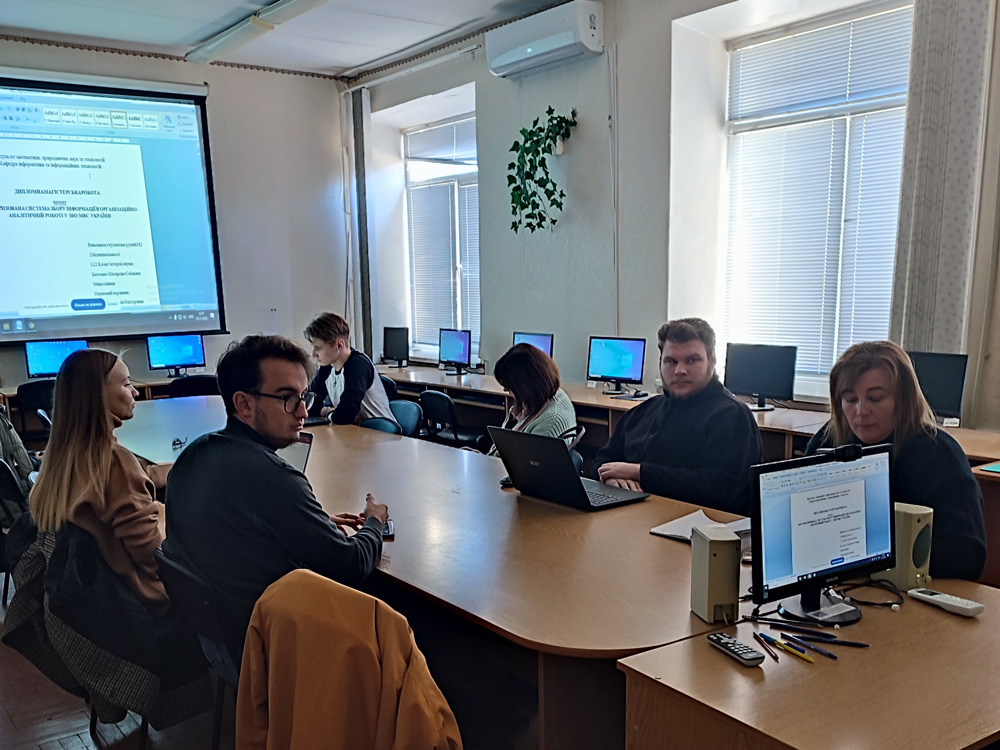 07 листопада на кафедрі інформатики та інформаційних технологій відбувся попередній захист кваліфікаційних робіт магістрантів спеціальності 122 Комп’ютерні науки. Захід відбувався у змішаному форматі: частина студентів та викладачів зібрались на п'ятій парі в аудиторії 204, інші – доєднались через Google Meet.