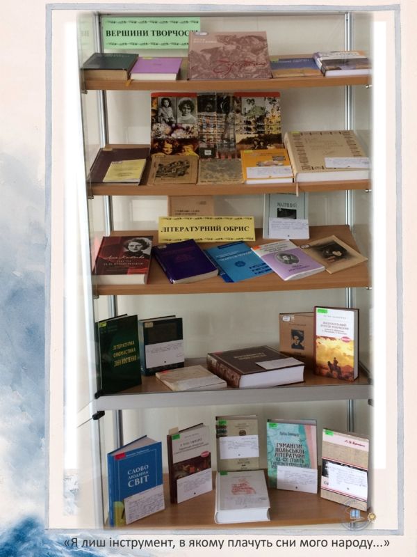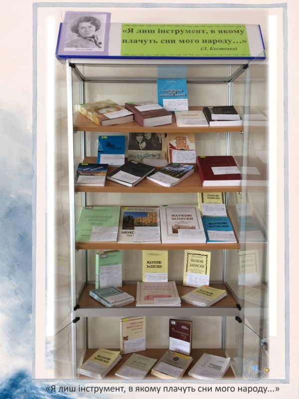 Книжкова виставка, яка презентується в читальному залі філологічних дисциплін з 18 березня, присвячена ювілею лауреата Державної премії України імені Т. Г. Шевченка, лауреата італійської літературної премії імені Франческо Петрарки видатної української поетеси Ліни Костенко.