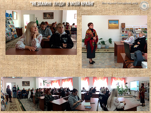 Гості заходу мали добру нагоду пізнати талановиту особистість, ознайомитись з творчістю народної майстрині пані Галиною Кулєшовою. Присутні мали змогу почути з уст талановитої життєдайної художниці, (хоч і обмеженої в просторі через проблеми зі здоров’ям), на онлайн-зустрічі, в яких нелегких умовах доводиться жити і творити: без світла і тепла, під цілодобові обстріли з градів та вибухи. Але не переїжджає в безпечне місце, не чекає на соціальну допомогу, а невтомно працює над своїми картинами, передаючи всі вилучені кошти на потреби ЗСУ. Виготовляє для наших захисників чудодійні обереги, вселяє віру в Перемогу. Секрети своєї творчості майстриня не тримає в таємниці, а з радістю поділилася ними на своєму відео-уроці чарівним порухом пензлика.