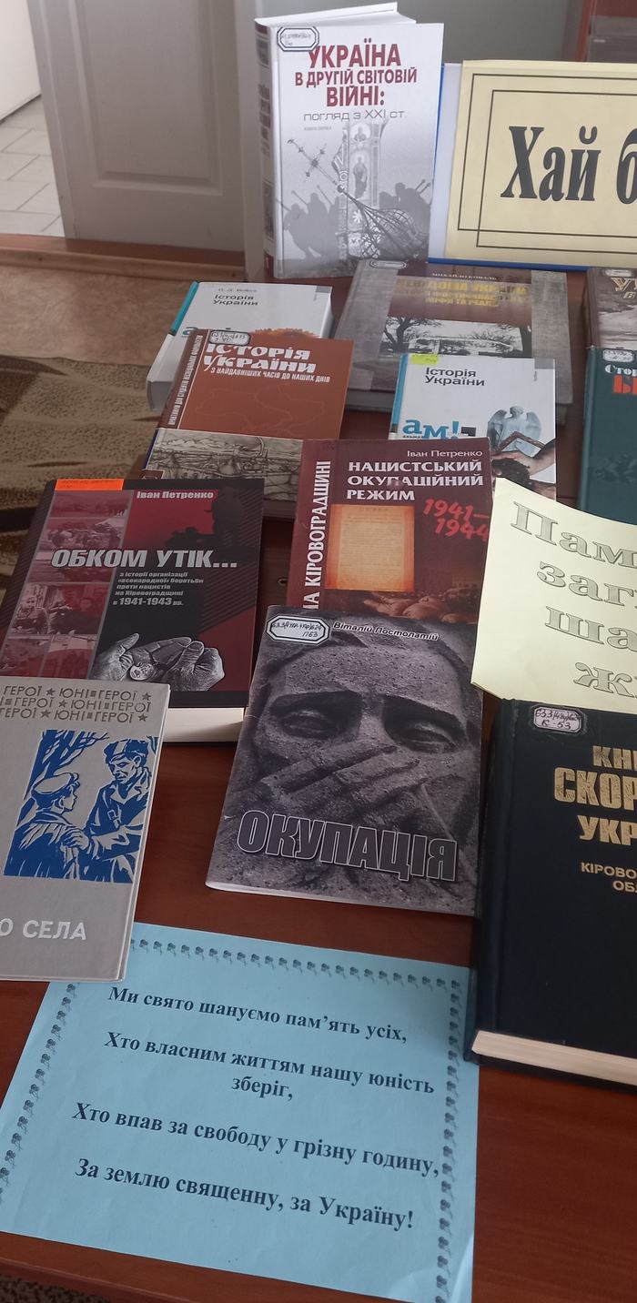 До Дня пам'яті та перемоги над нацизмом у Другій світовій війні бібліотека ЦДУ ім. В. Винниченка підготувала тематичну книжкову виставку «Хай буде мир на всій Землі».
