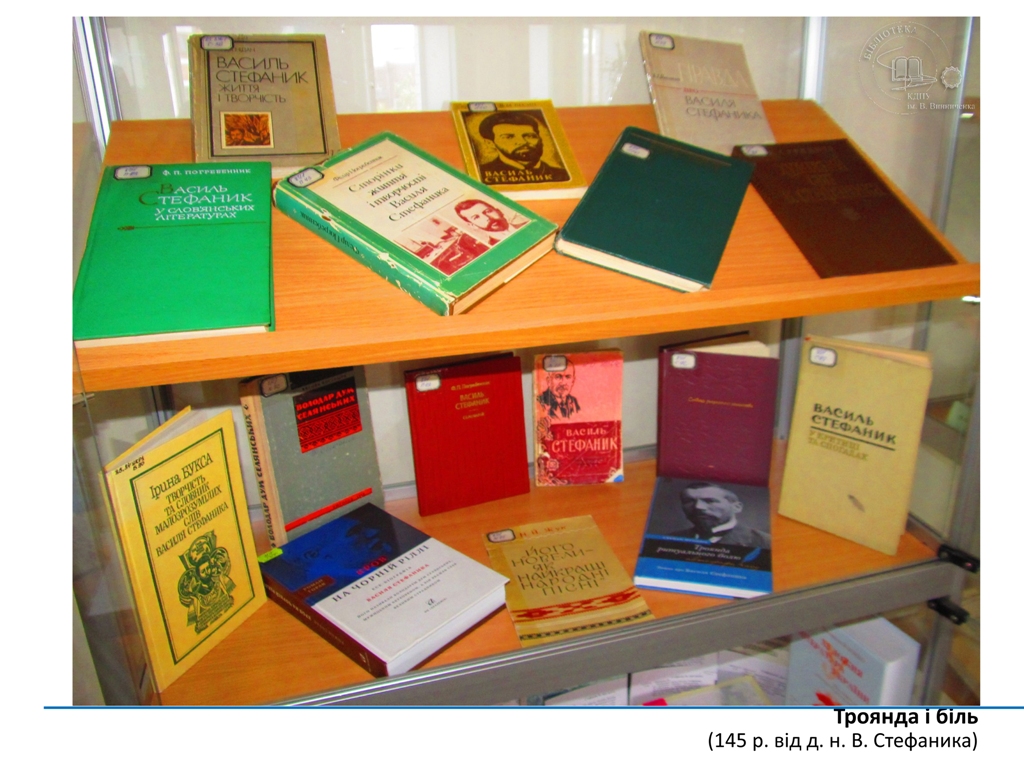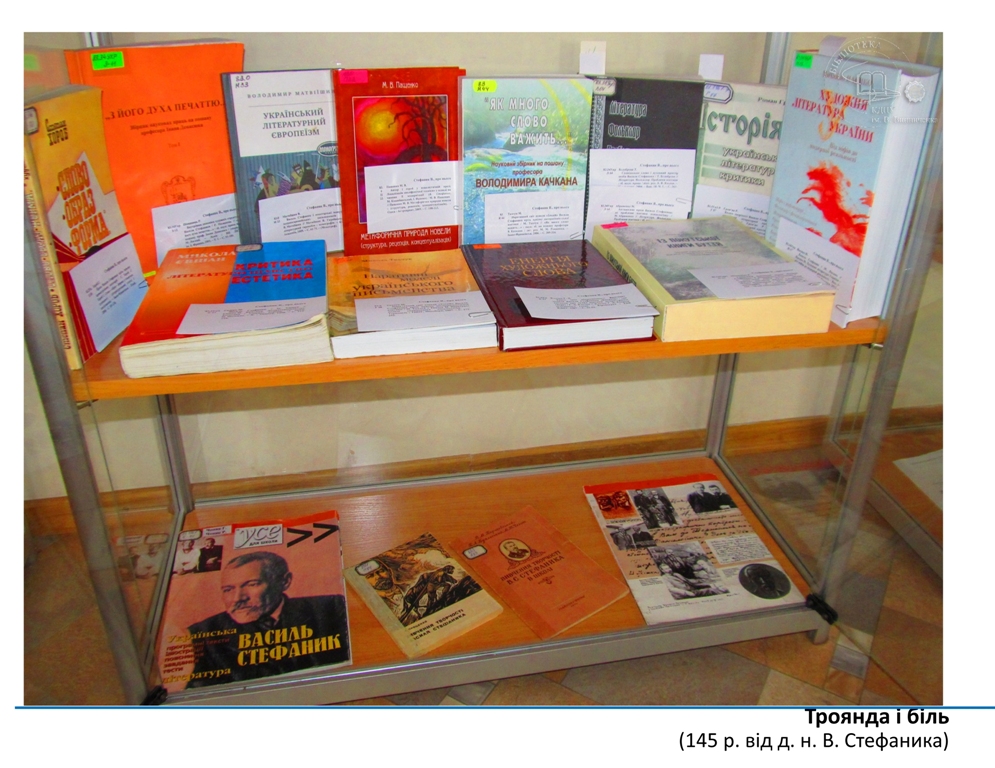 Матеріали книжкової виставки, яка експонується в читальному залі філологічних дисциплін бібліотеки університету з 10 травня, розповідають про класичну спадщину неповторного майстра української соціально-психологічної новели Василя Стефаника.