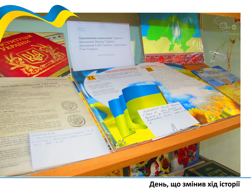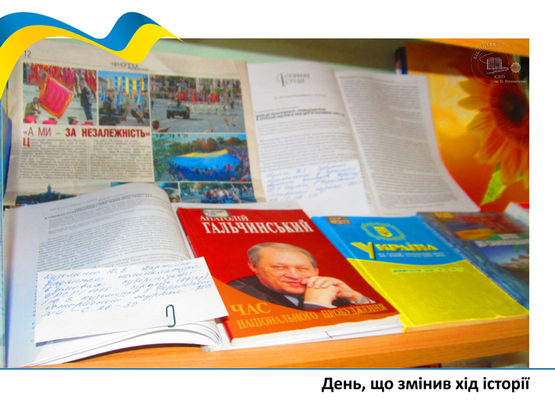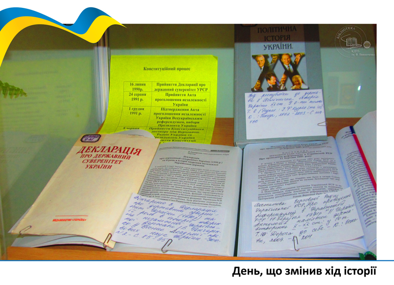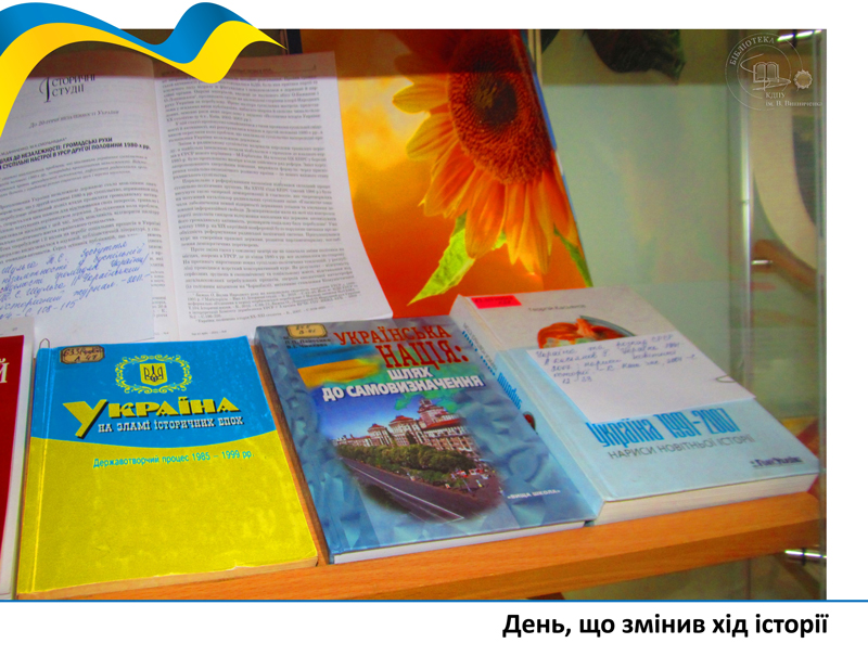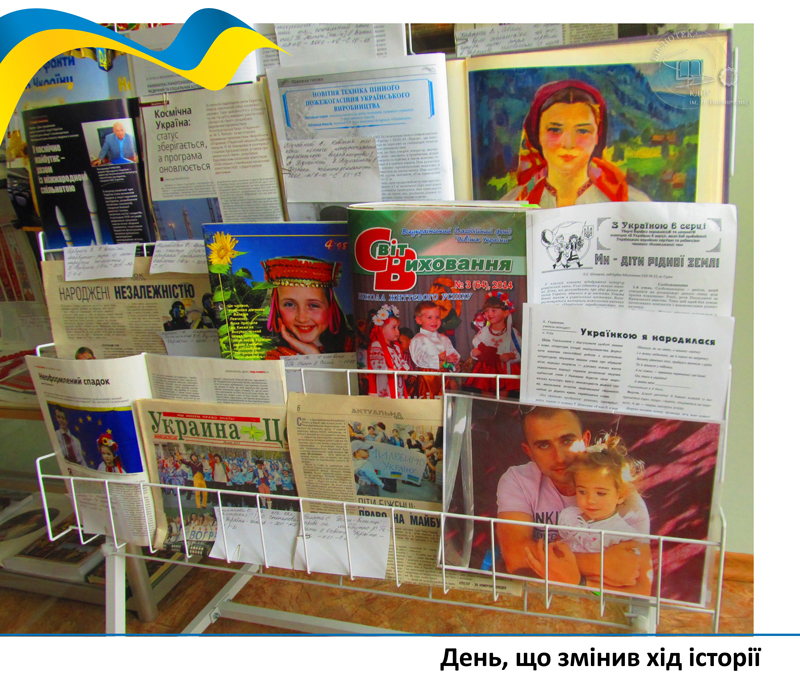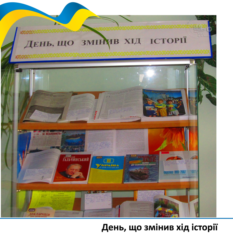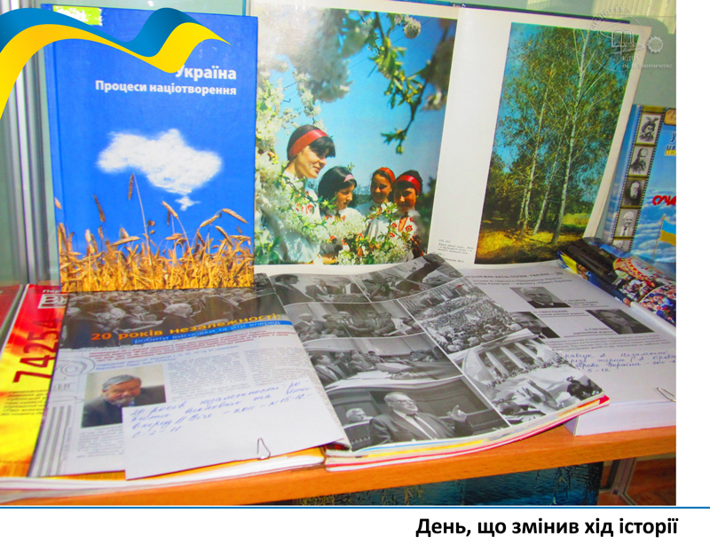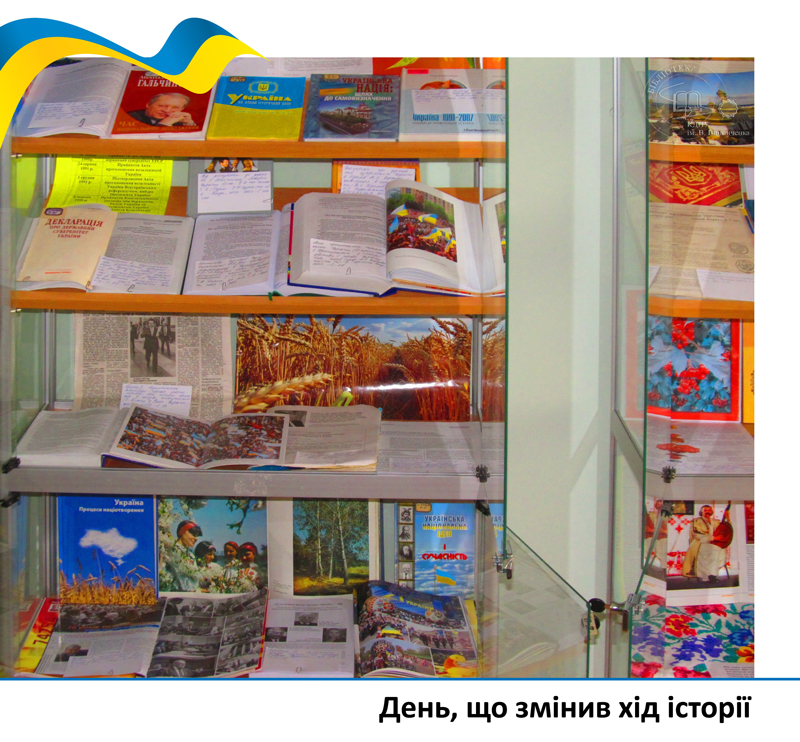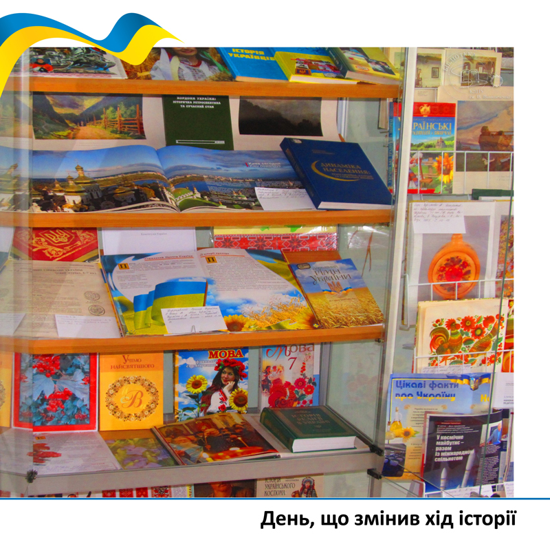 До 25 річниці незалежності України в універсальному читальному залі підготовлена виставка під назвою «День, що змінив хід історії». Запрошуємо всіх бажаючих на виставку книг.
