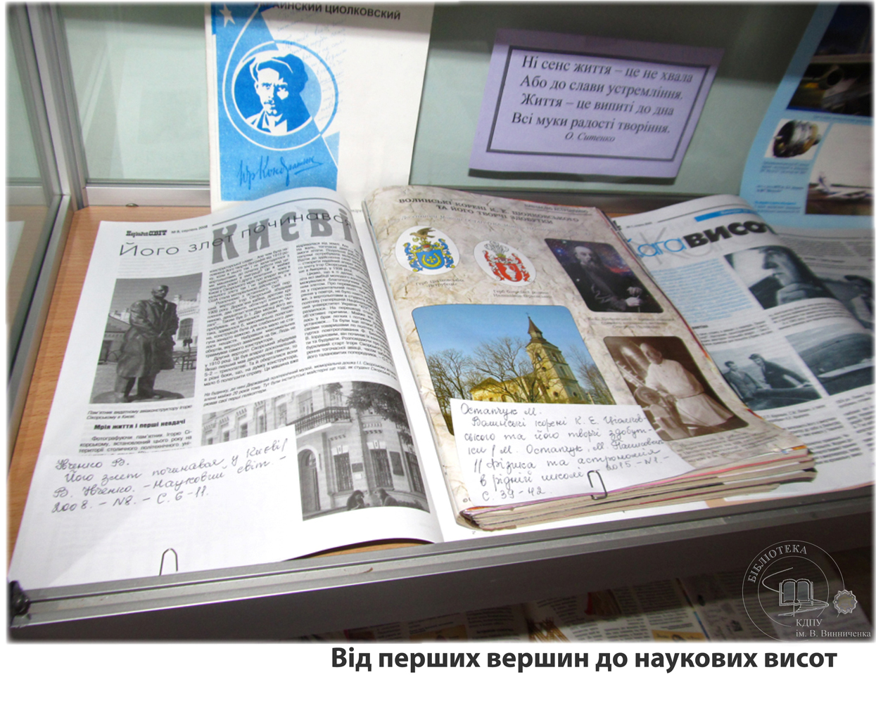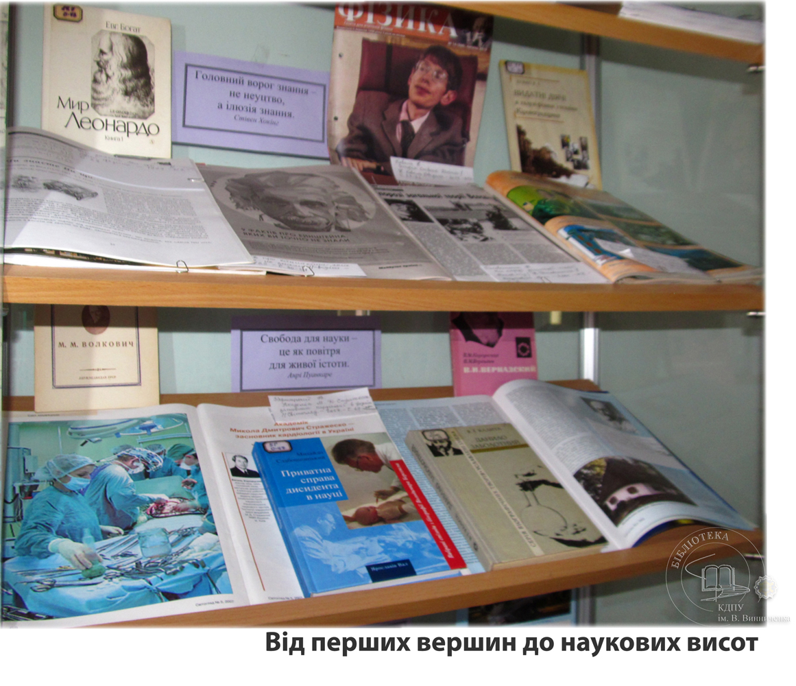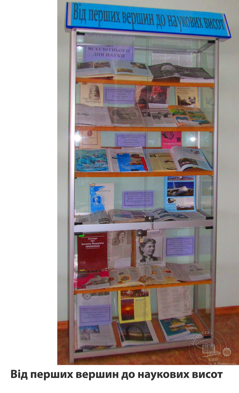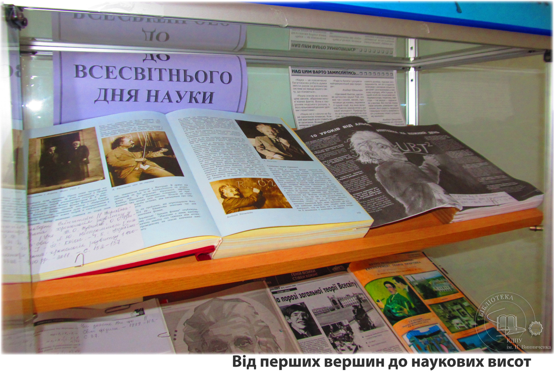 Шановні читачі, до Всесвітнього дня науки універсальний читальний зал презентує виставку «Від перших вершин до наукових висот». Книги та періодичні видання познайомлять Вас із відомими науковцями, їхніми досягненнями в галузі фізики, медицини, авіаційного конструювання, а також із загадковими фактами їхнього життя.