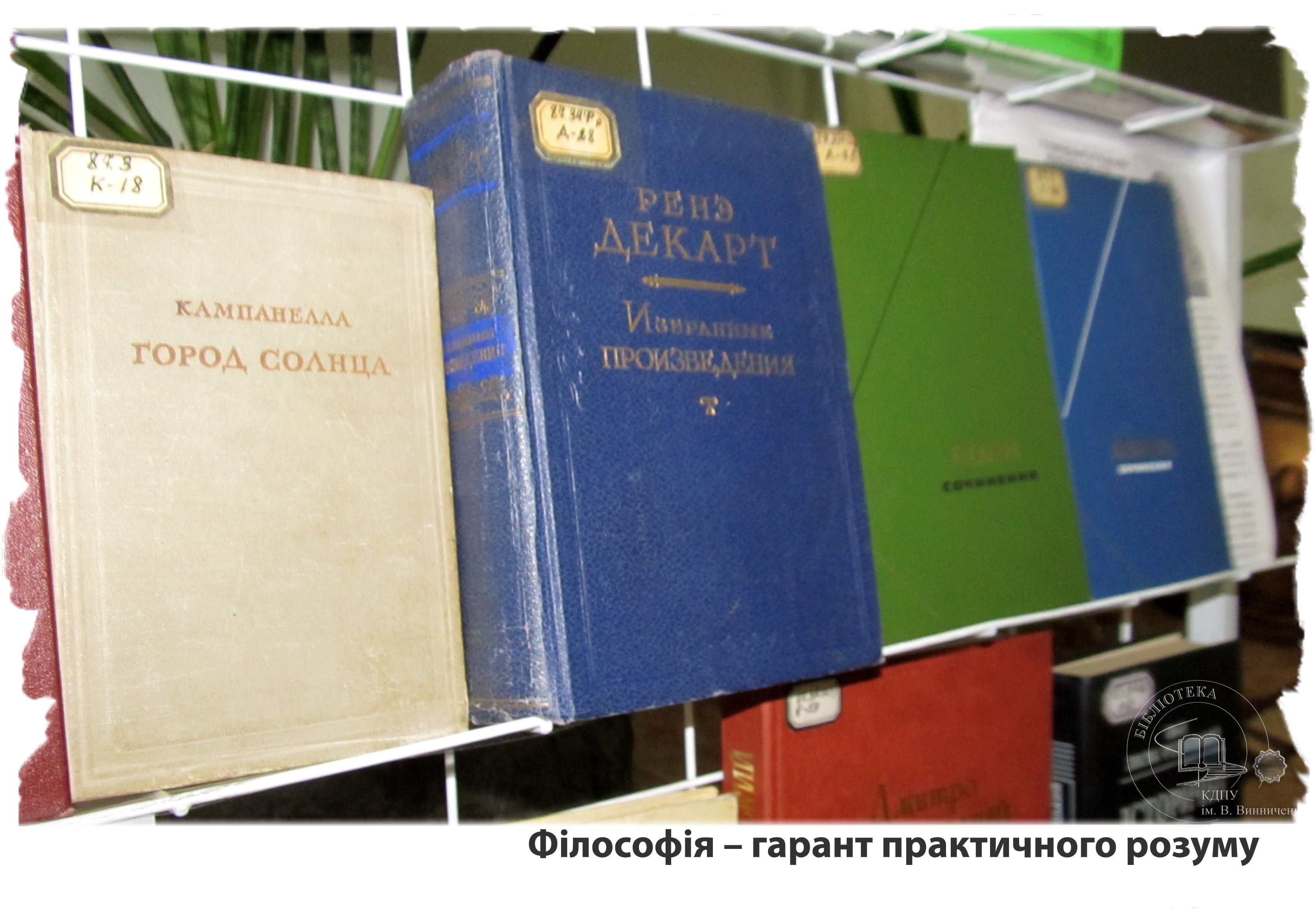 Завітайте до універсального читального залу та ознайомтеся з підручниками з філософії та її історії, а також працями видатних філософів світу та України. Адже знання з філософії допоможуть вам визначити свою життєву позицію і впевнено вирішувати особисті, професійні та суспільні проблеми.