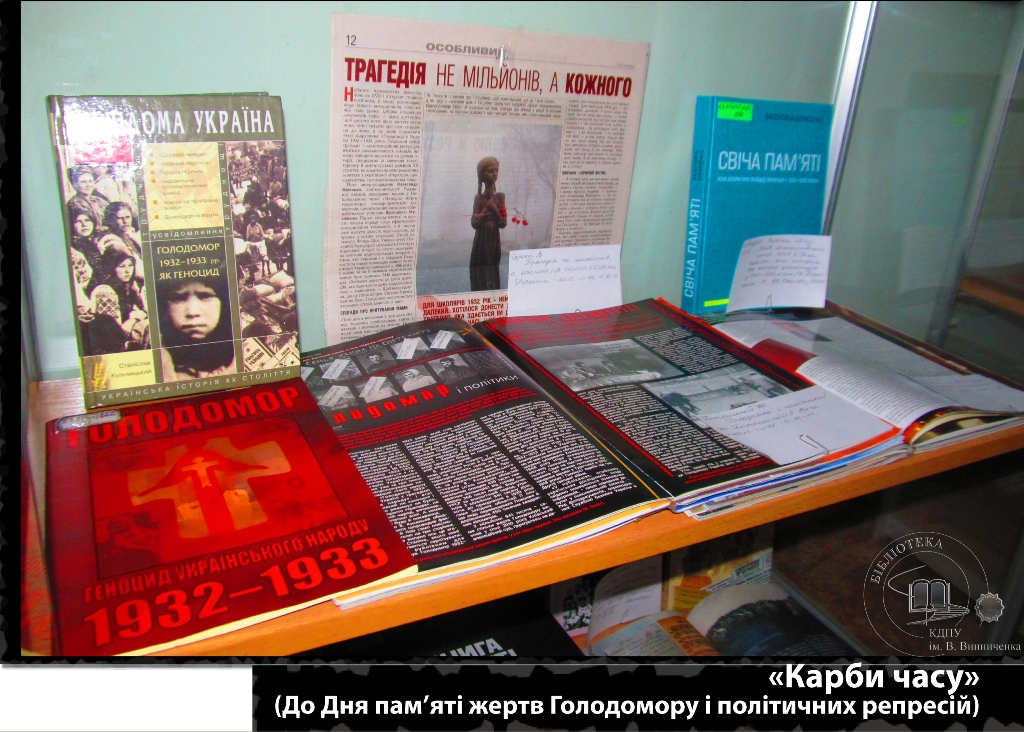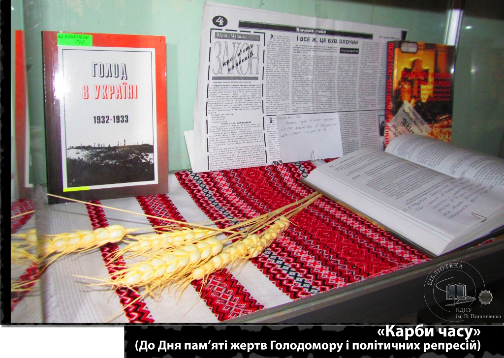 Україна і світ вшановує пам’ять жертв Голодомору 1932-1933 років. Мільйони загиблих, тисячі ненароджених, понівечені людські долі – безпрецедентний злочин у світовій історії. Масштаб цієї трагедії важко осягнути і неможливо зрозуміти. Ім’я їй – Голодомор. Її суть – геноцид. Універсальний читальний зал також долучається до жалобних заходів і пропонує вашій увазі виставку «Карби часу».