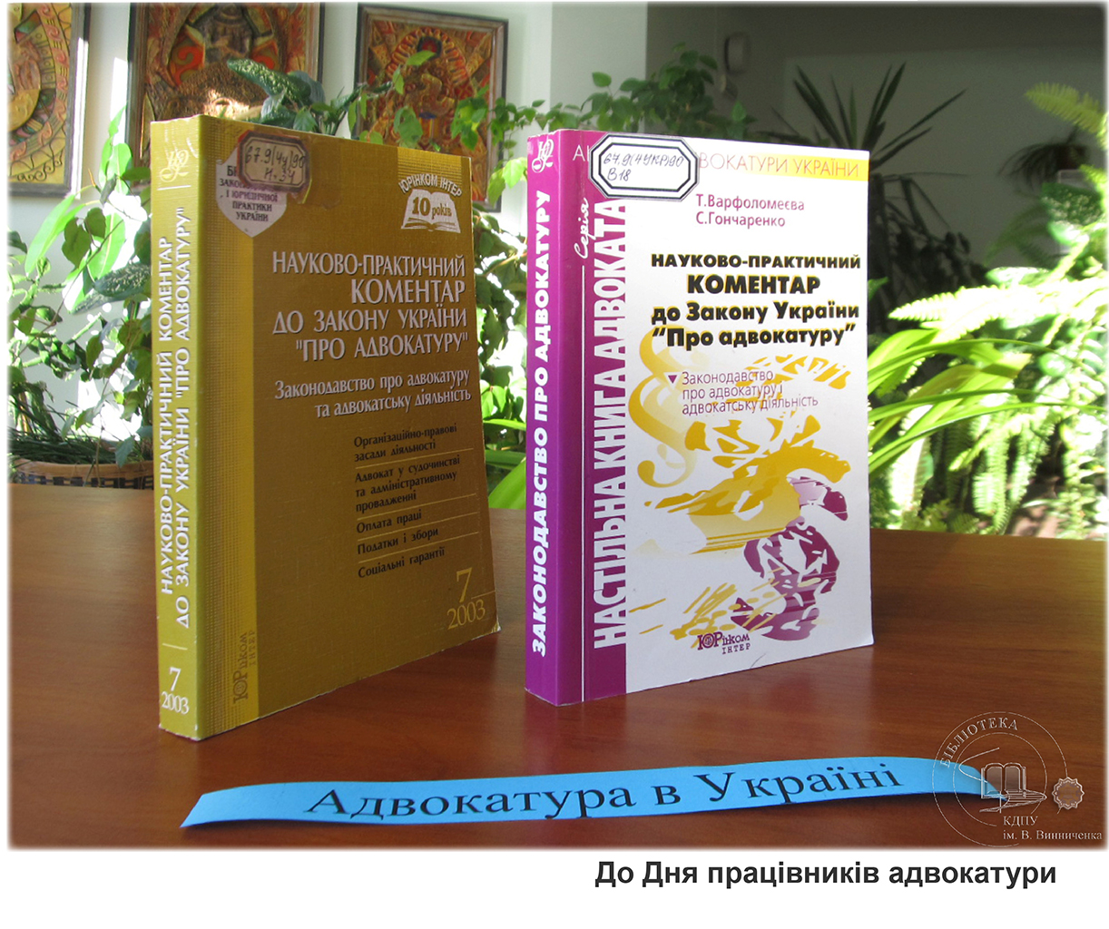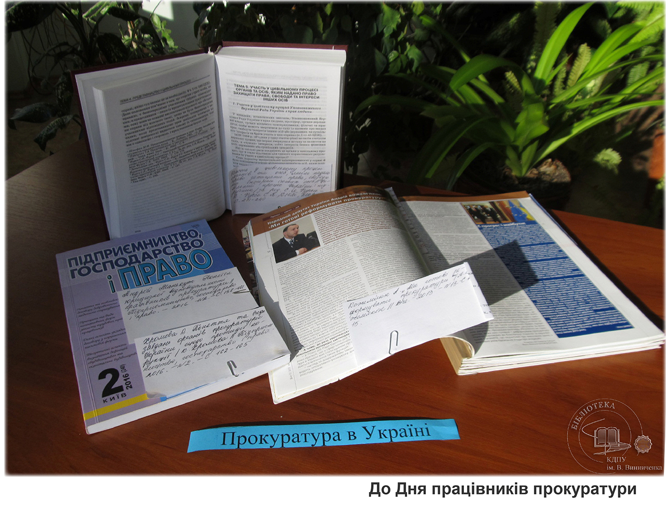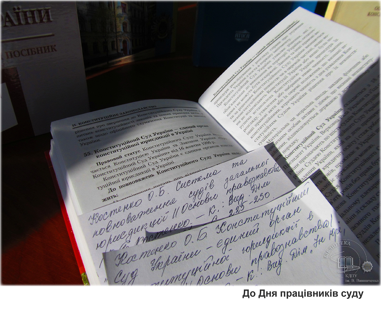 Вітаємо правознавців зі святами! Правоохоронні органи України щорічно в грудні відзначають свої професійні свята: День працівників суду, прокуратури, адвокатури.Бібліотекарі універсального читального залу з нагоди цих свят презентували виставку «Охоронці наших прав». Юридична література і періодичні видання розкривають компетенцію, повноваження та структуру основних правоохоронних органів України, знайомлять з конституційними змінами у цій галузі.