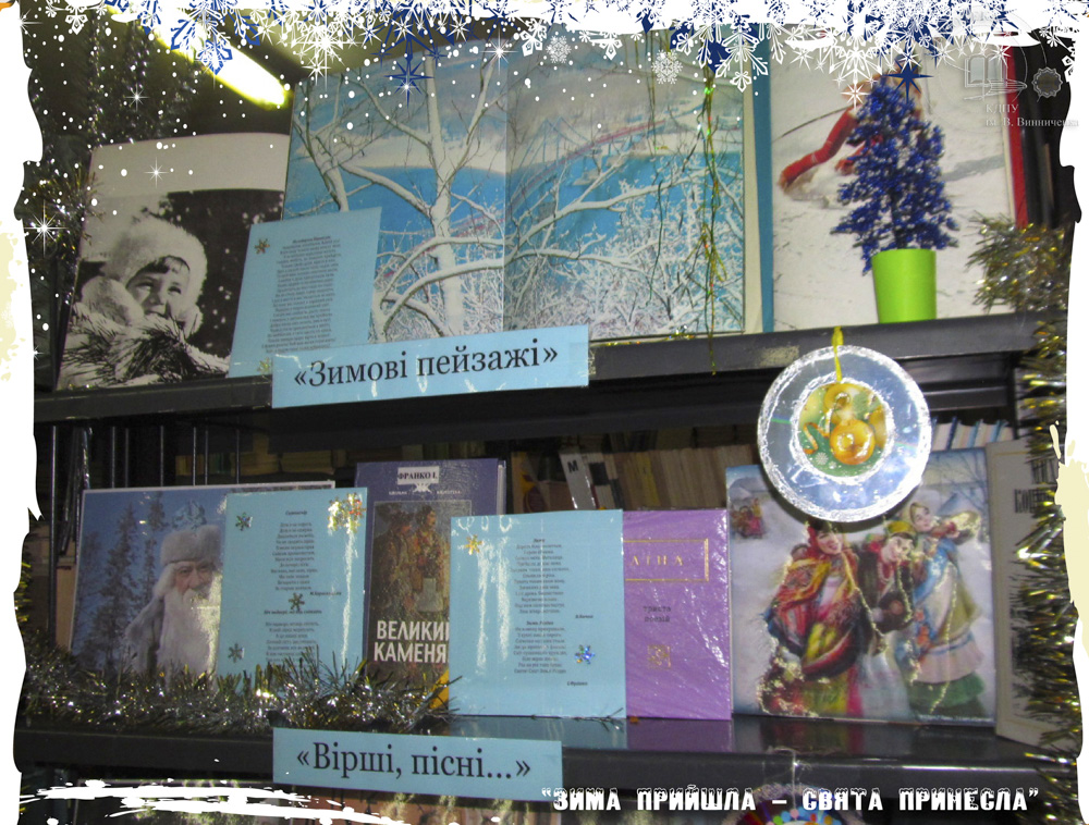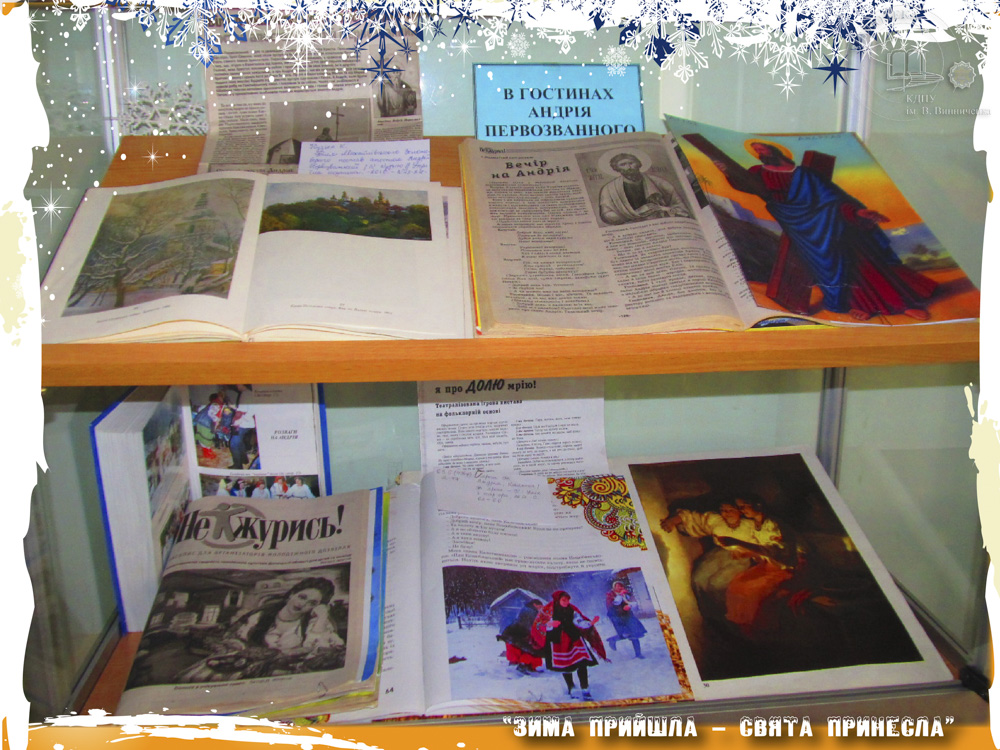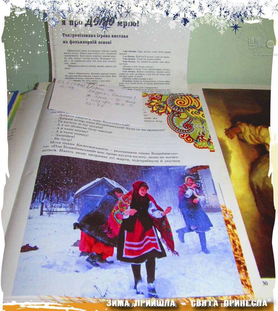 Запрошуємо наших читачів відчути цей подих свят та переглянути виставки, присвячені зимовому циклу звичаїв та традицій нашого народу. Кольорові ілюстрації картин виставкової експозиції «Зима прийшла – свята принесла» переконують, що зимі раді, як діти, так і дорослі: розваг вистачає для всіх.