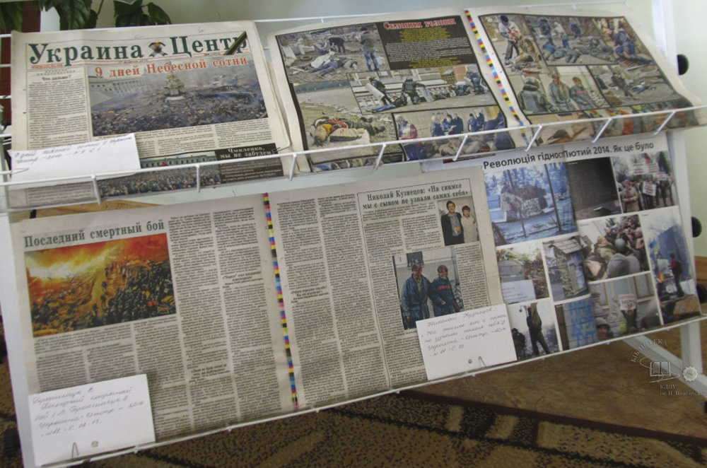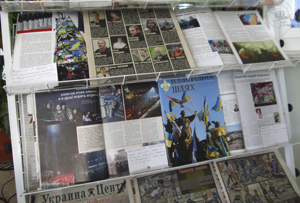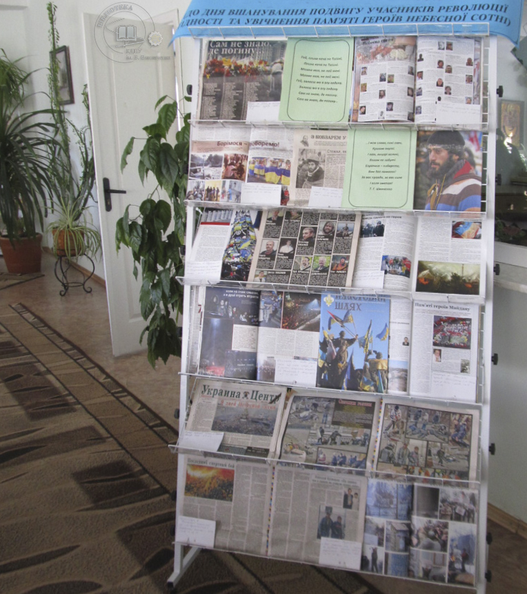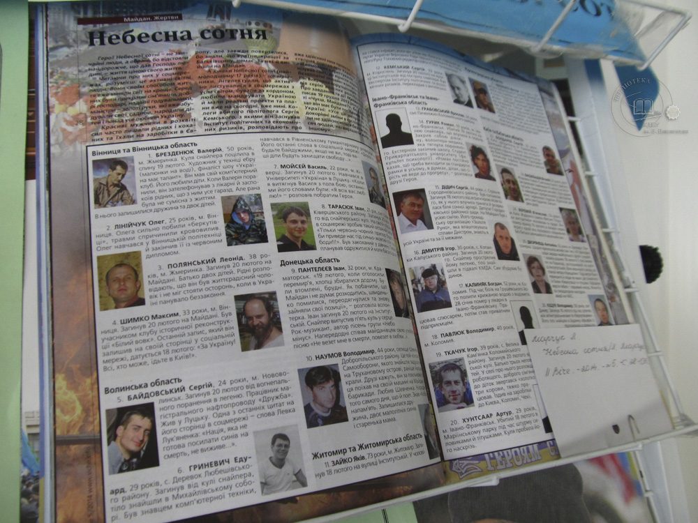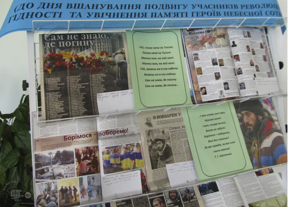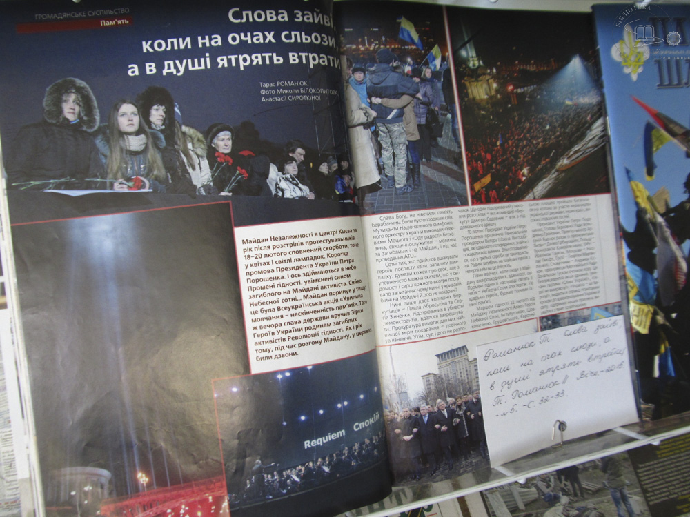 До Дня вшанування подвигу учасників Революції гідності та увічнення пам’яті героїв Небесної сотні універсальний читальний зал пропонує вашій увазі виставку "Обрані Господом". Герої Небесної сотні – не звичайні люди, а обрані, бо відстояли найдорожче, що дав Господь людині – життя, ціною свого життя. Це були активні світлі люди, справжні патріоти своєї Батьківщини, не байдужі до майбутнього країни. Своїми вчинками вони вже міняли світ на краще. На жаль, їх життєвий шлях був обірваний на злеті. Найменше, що ми можемо зробити для наших героїв – це зберегти про них світлу пам’ять в наших серцях. Завітайте до універсального читального залу та ознайомтеся з виставкою особисто.