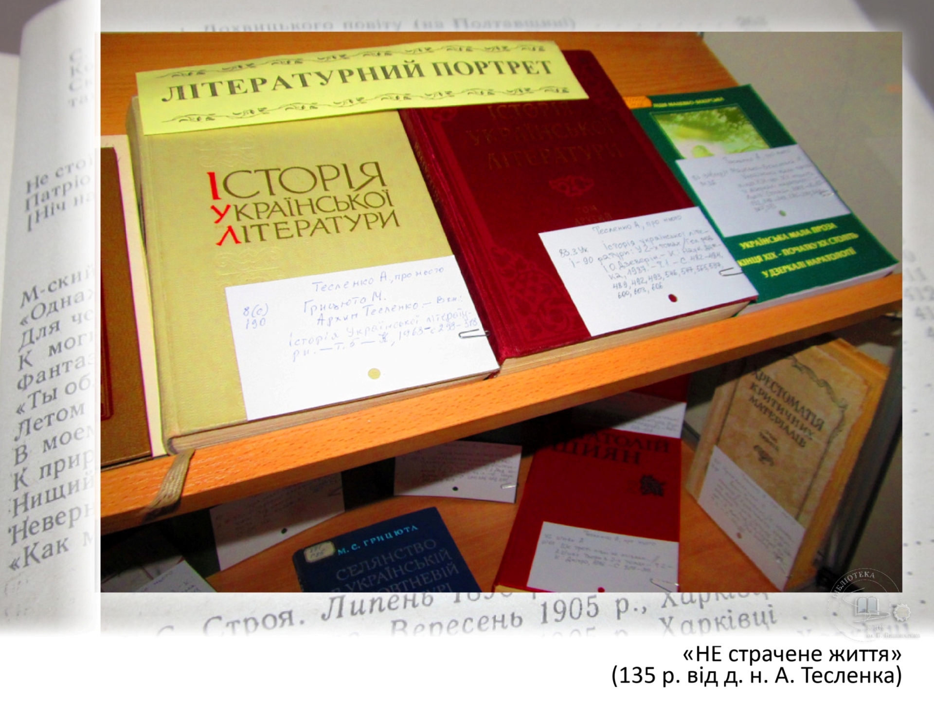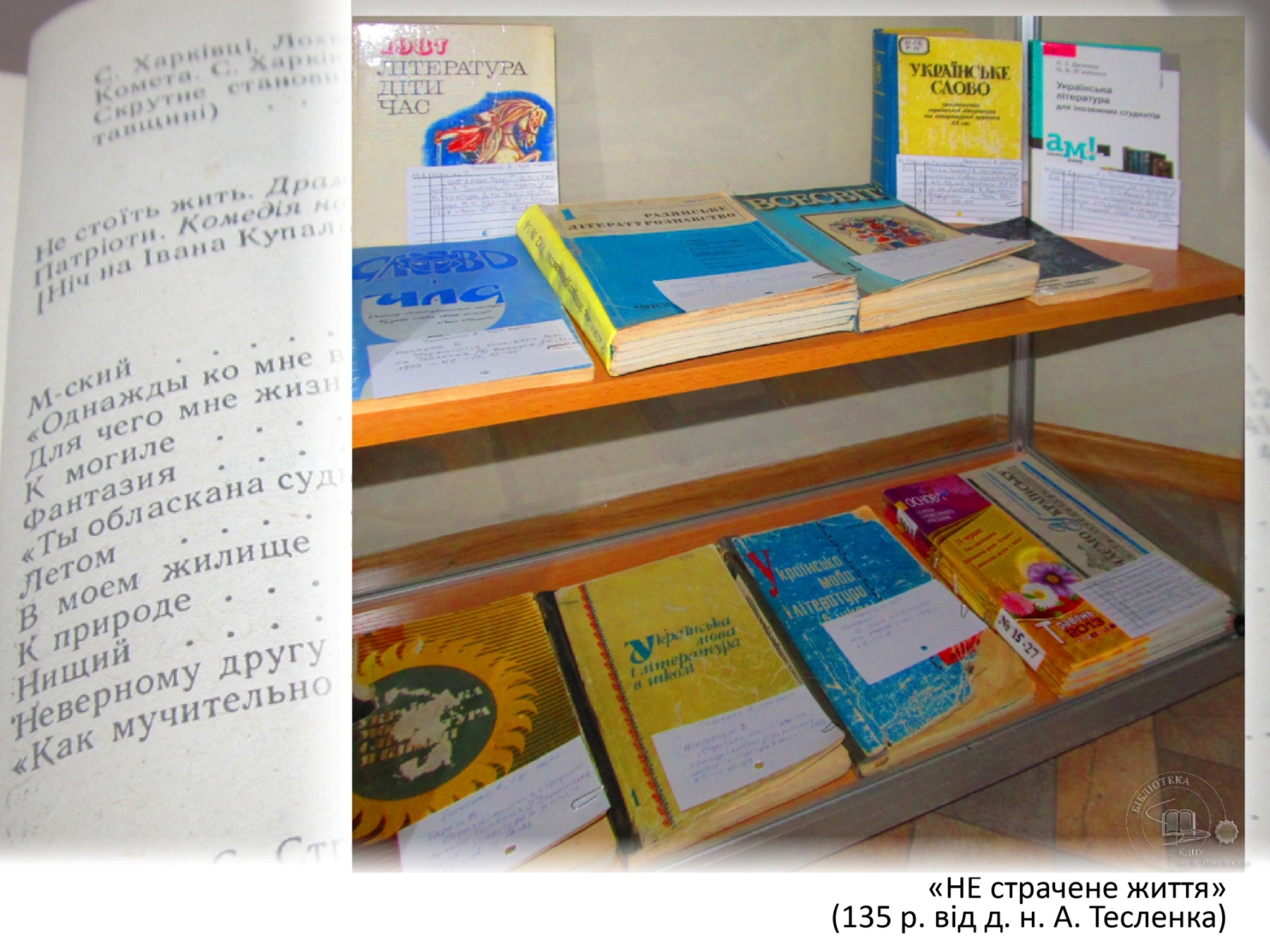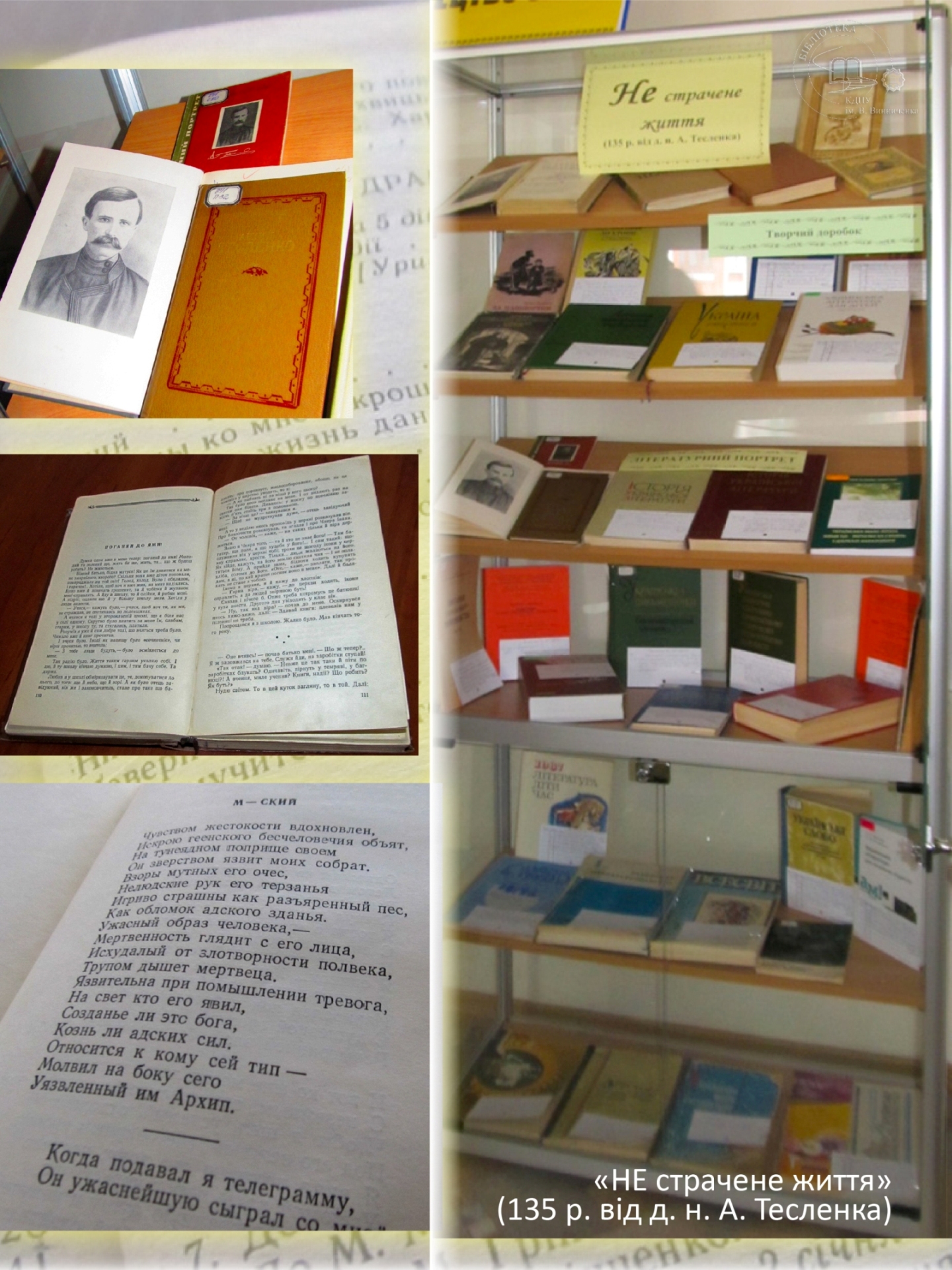 В читальному залі філологічних дисциплін з 1 березня протягом тижня експонується книжкова виставка, яка присвячена видатному українському письменнику-реалісту початку ХІХ століття, знавцю життя і психології українського народу А. Ю. Тесленку.