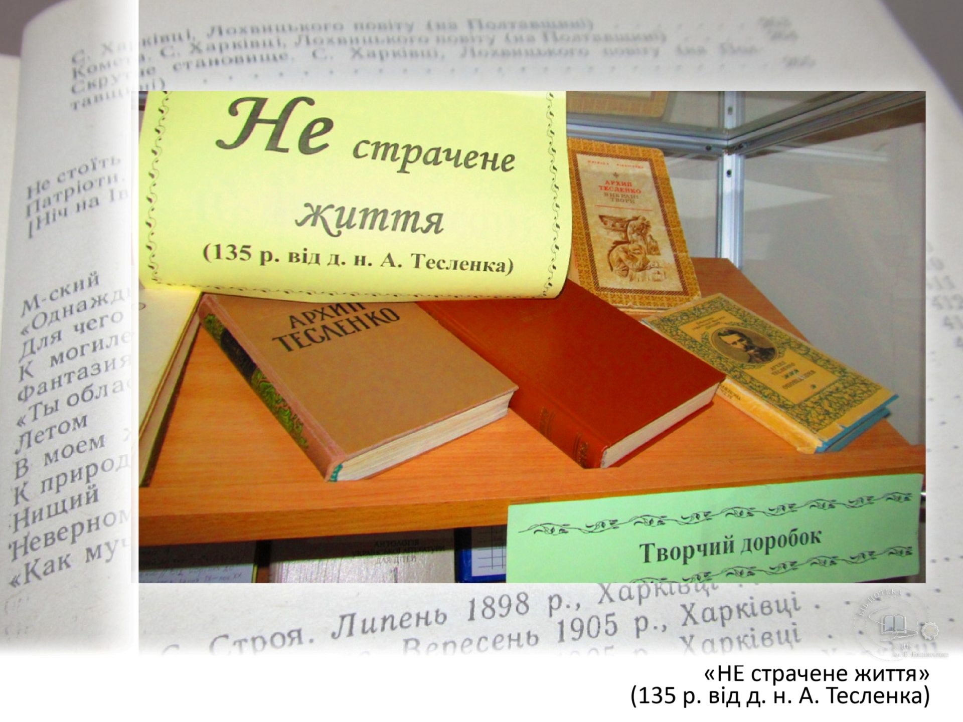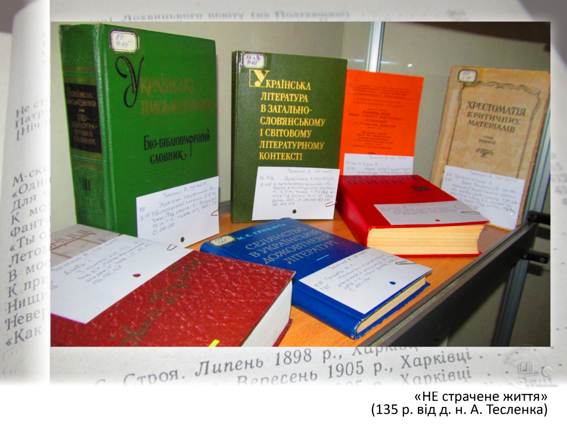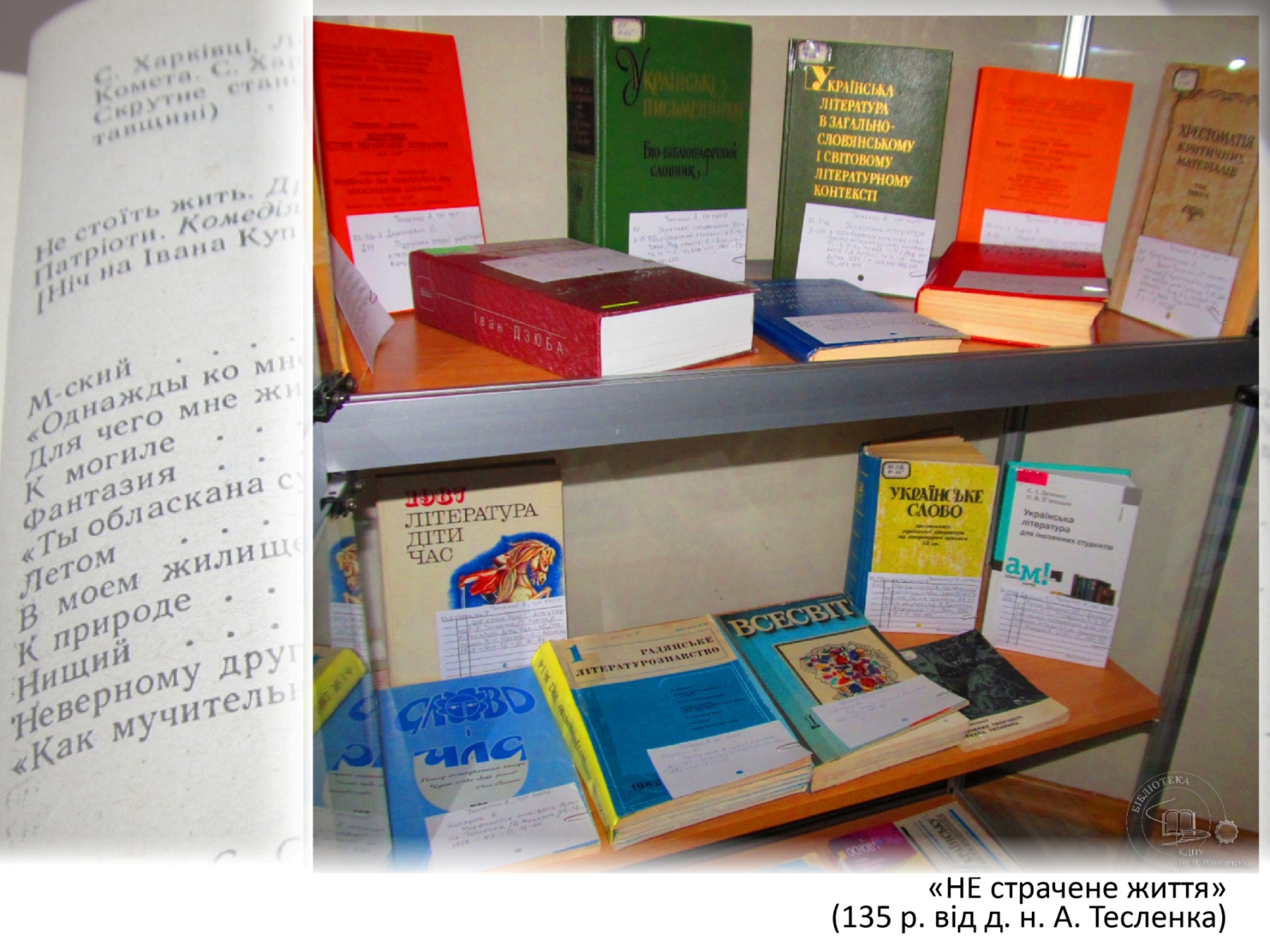 В читальному залі філологічних дисциплін з 1 березня протягом тижня експонується книжкова виставка, яка присвячена видатному українському письменнику-реалісту початку ХІХ століття, знавцю життя і психології українського народу А. Ю. Тесленку.